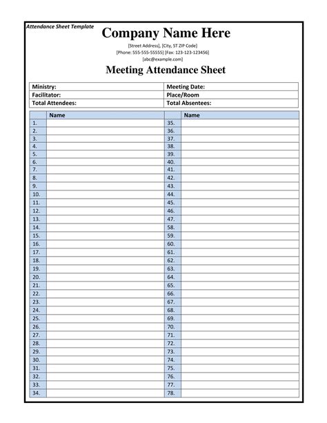 Read Online attendance sheet template pdf Reader